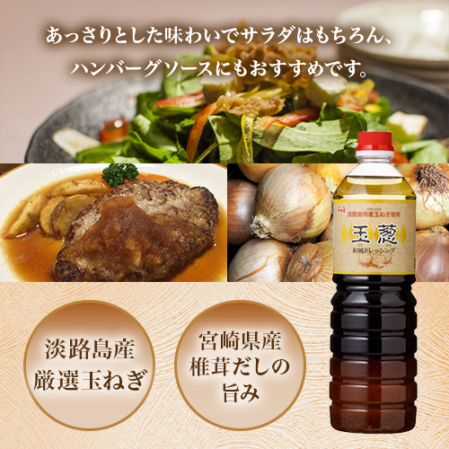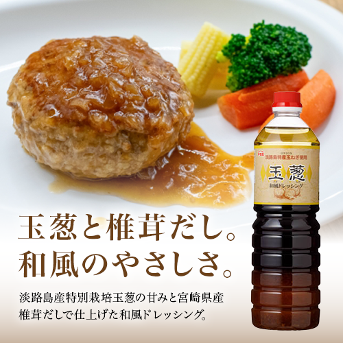 兵庫県淡路島産の特別栽培玉葱と宮崎県産の椎茸だしで味を整えた、あっさり感のある和風ドレッシングです。野菜サラダ以外にもハンバーグソースなど色んな料理にご使用できます。