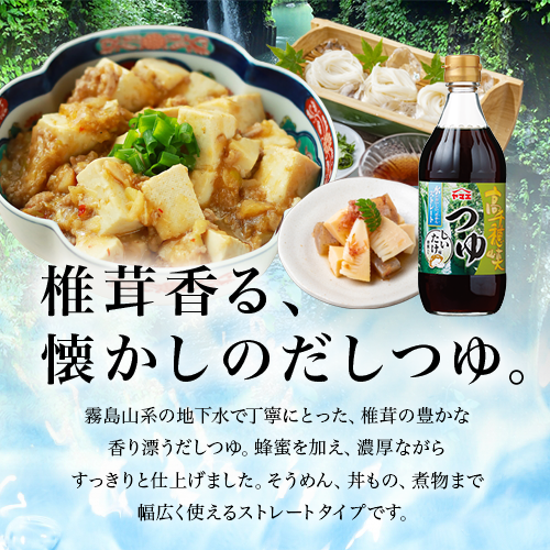ヤマエ食品工業 高千穂峡つゆ しいたけ味 500ml 商品詳細ページ