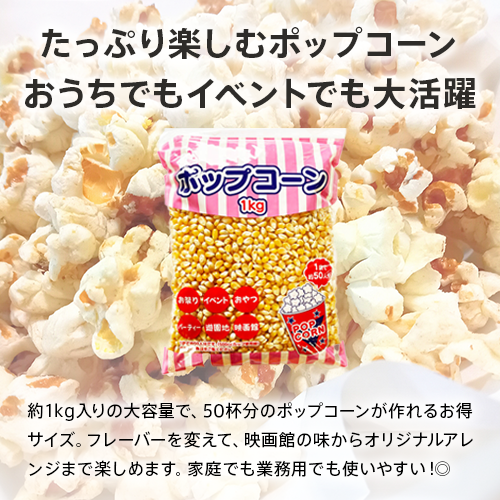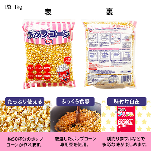 ポップコーン用の豆のみが1kgはいっています。味付けはお好みです。