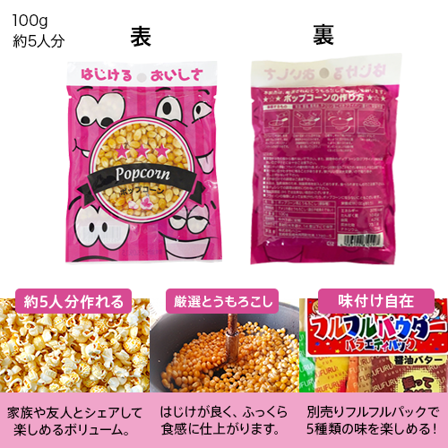 ポップコーン用の豆のみが100gはいっています。